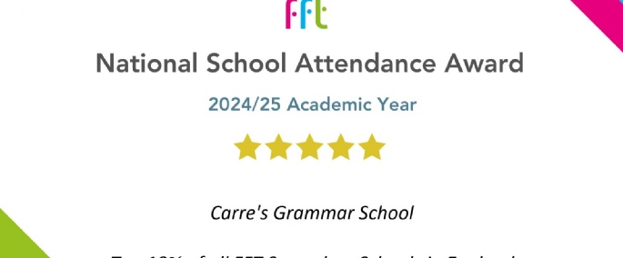 We’re delighted to announce that Carre's Grammar School has been recognised in the top 10% of all FFT schools nationally for attendance during the 2024–25 academic year.
