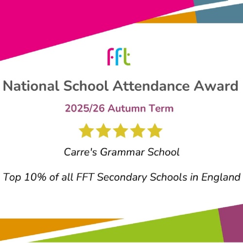 We’re proud to announce that Carre's Grammar School has been recognised once again in the top 10% of all FFT schools nationally for attendance (2025–26).